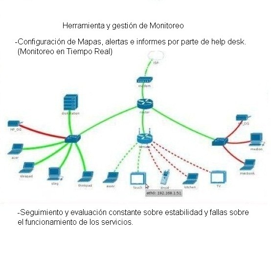 Ventas, instalaciones, mantenimientos preventivos y correctivos, diagnóstico, configuración de redes, reparación de equipos.